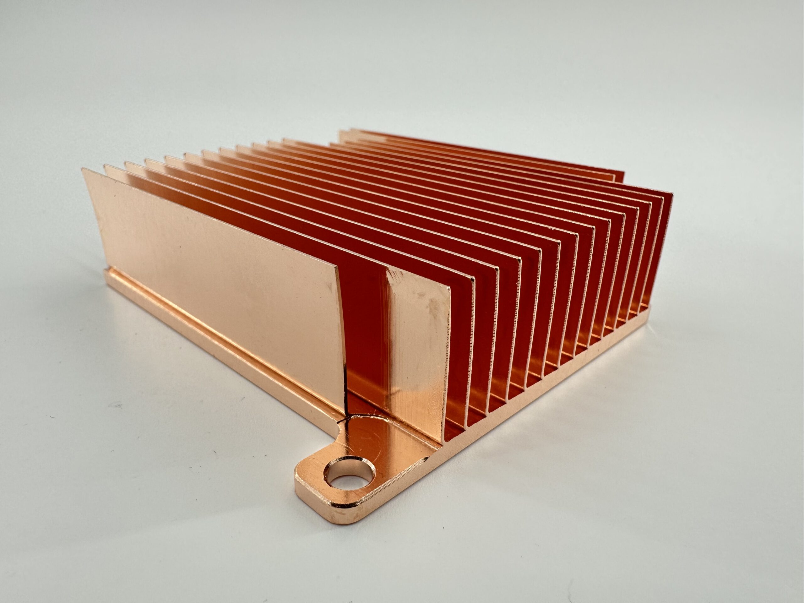A skived heat sink is formed by slicing thin, closely packed fins directly from a single block of copper or aluminum. Because the fins and base remain a unified piece, there is no solder layer or mechanical interface that could trap heat. This one-piece structure enhances consistency and lowers thermal resistance, which is highly valuable for EV systems requiring rapid dissipation. For charging modules with compact enclosures, the high fin density created by precision skiving helps maximize available surface area without changing the footprint of the device.